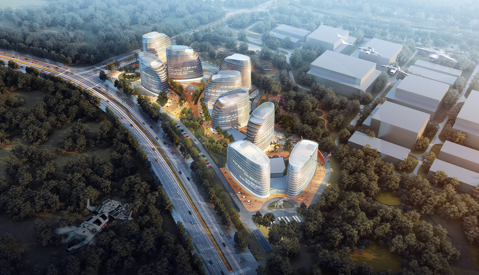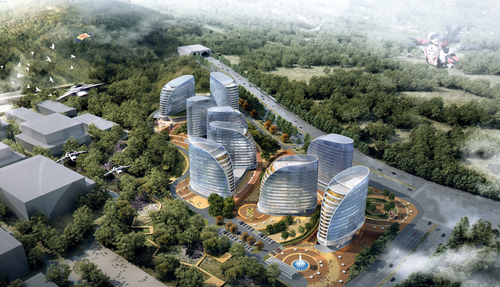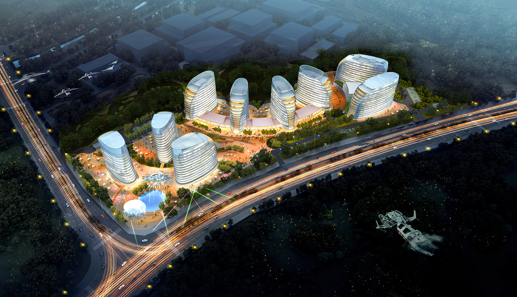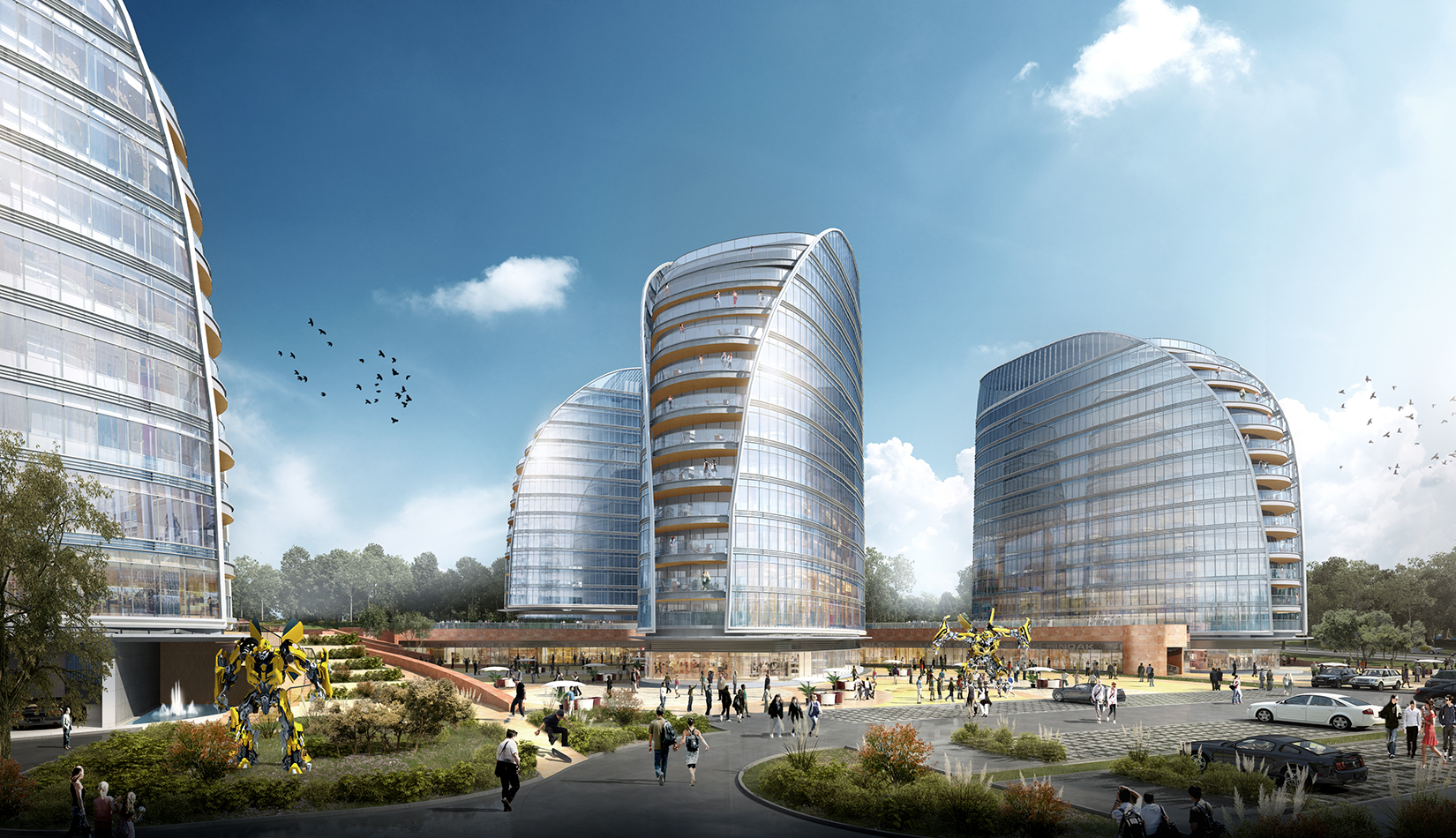 注重地塊內(nèi)空間環(huán)境的滲透和景觀視線效果,保持地塊環(huán)境與城市環(huán)境的共融性,提升城市空間價(jià)值。建筑外觀采用簡潔、現(xiàn)代的風(fēng)格,立面形象富有視覺沖擊力,樹立企業(yè)品牌與形象。高層建筑層層平臺向景觀蔓延,為人們提供豐富多變的生活工作空間。底層平臺上的文化內(nèi)街,結(jié)合影視特色主題,聚集人氣,串聯(lián)互動。曲線連廊內(nèi)部空間流動,成為具有活力的公共交往場所。