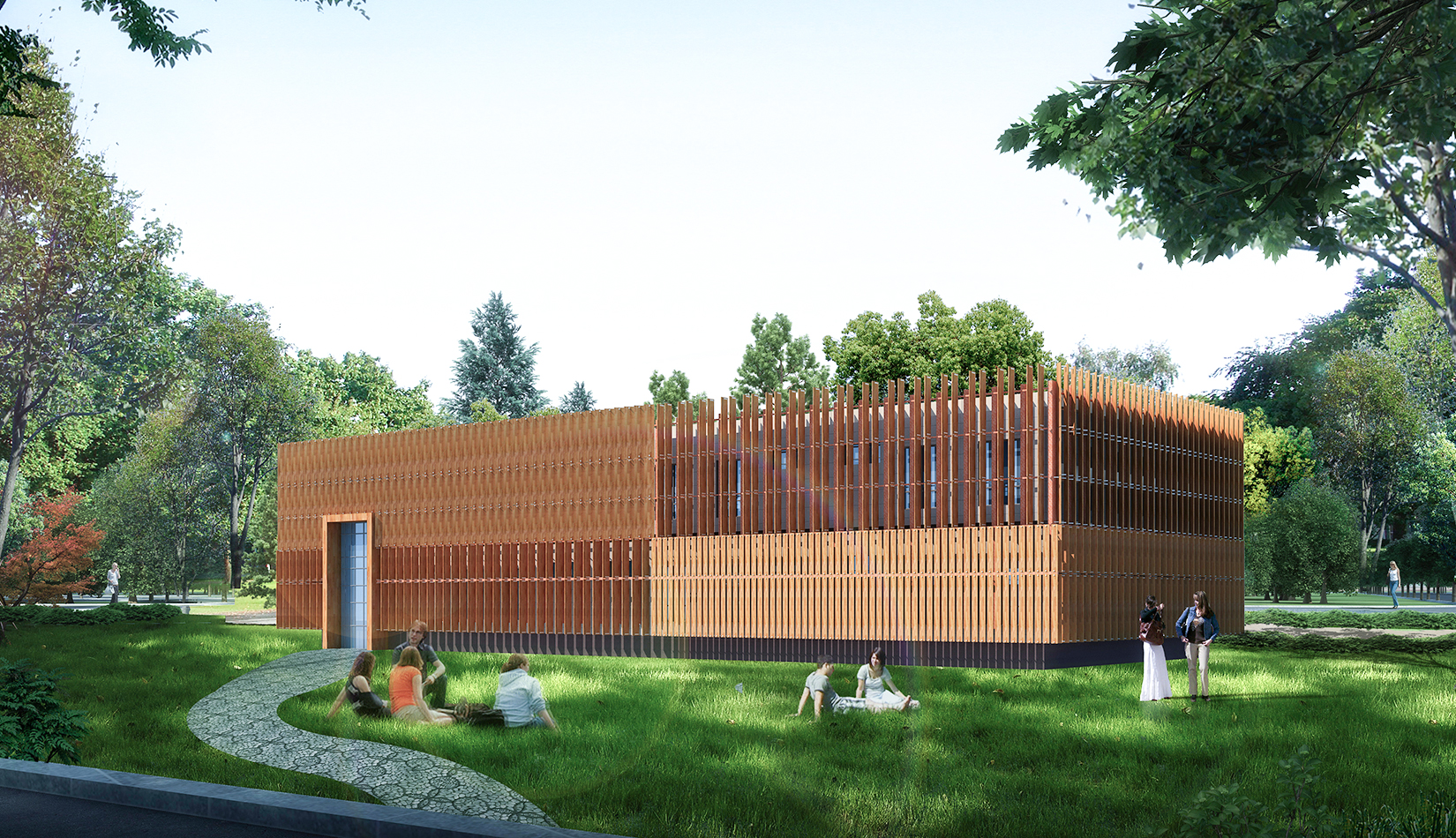 東區(qū)生活區(qū)庭院空間配合建筑設(shè)計(jì)的現(xiàn)代主義風(fēng)格,提取未來主義畫派的代表元素——線條 作為構(gòu)思的主脈絡(luò),以“理性與未來”為設(shè)計(jì)理念,在建筑圍合的景觀中庭采用現(xiàn)代景觀設(shè)計(jì),意在未來,情致校園 。
