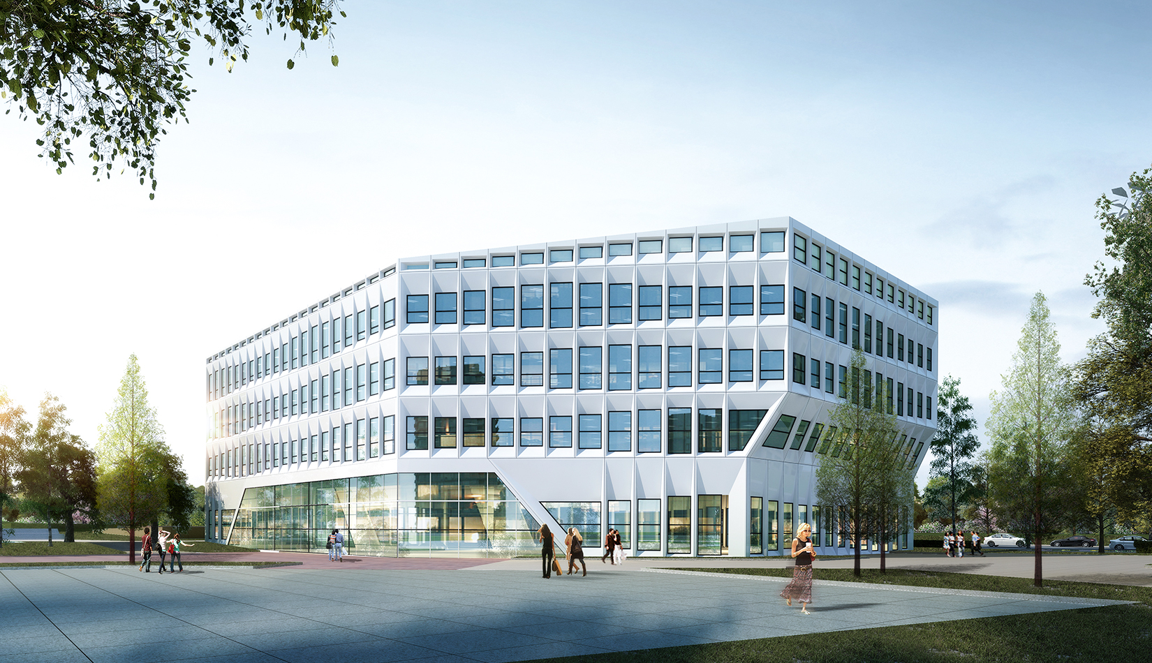 基地東望黃海海域,方案規(guī)劃運(yùn)用海浪形態(tài),曲折自由,同時(shí)變化豐富的立面設(shè)計(jì)手法呼應(yīng)海面的波光粼粼。海洋生物資源開發(fā)中心金屬質(zhì)感的立面用如海浪般曲線變化的立面設(shè)計(jì)手法體現(xiàn)海洋建筑特色,以“海洋波浪”為入手點(diǎn),突破了科研平臺(tái)單一化的立面設(shè)計(jì)。