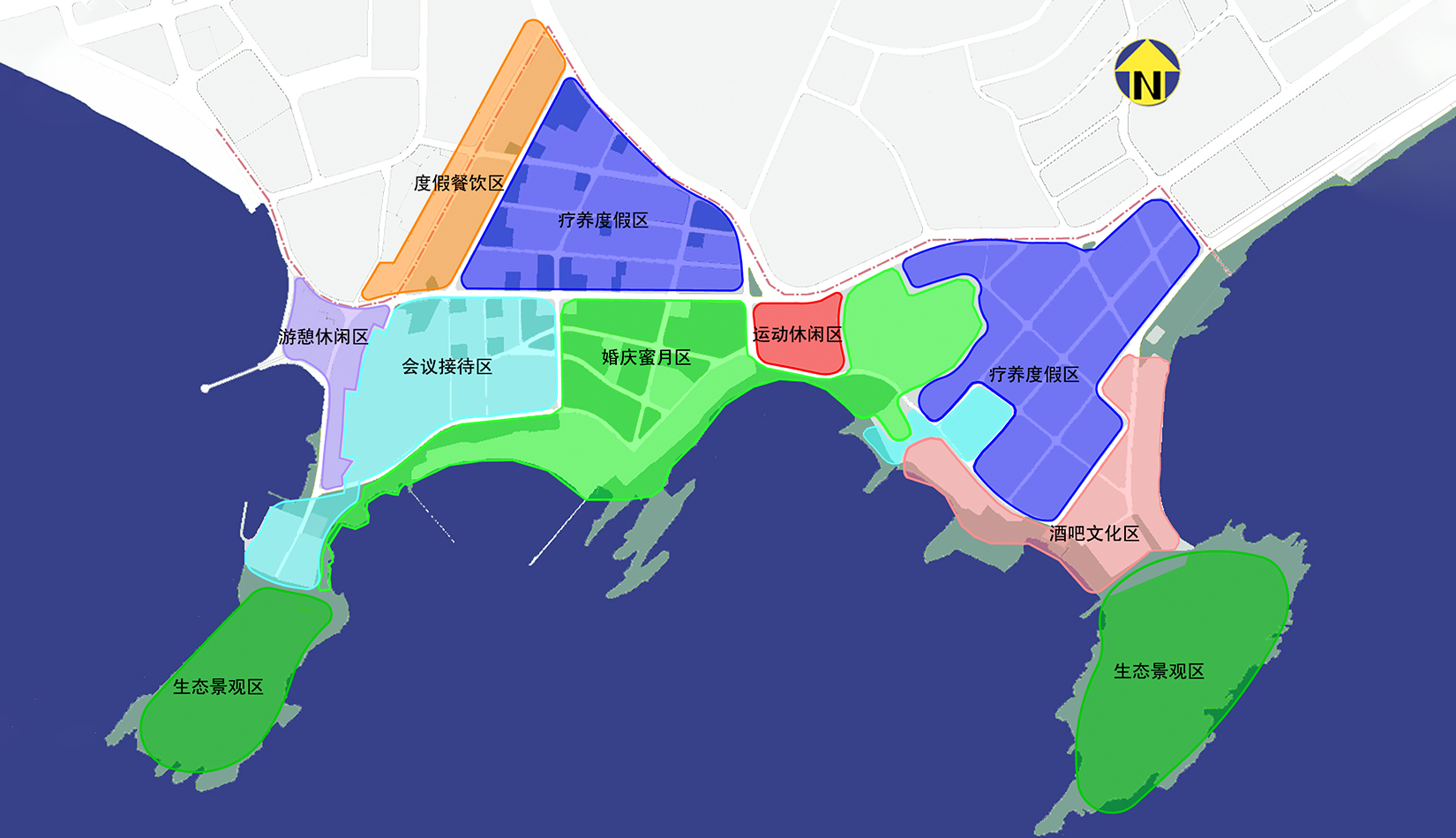 秉持:“整體性積極保護(hù)、減法為主、功能提升、公眾開(kāi)放”的原則,整飭形成度假餐飲、游憩休閑、會(huì)議接待、婚慶蜜月、運(yùn)動(dòng)休閑、酒吧文化、療養(yǎng)度假與生態(tài)景觀(guān)區(qū)。