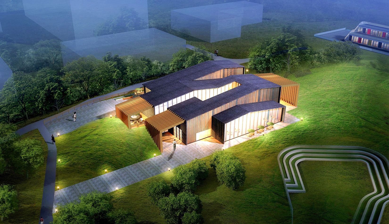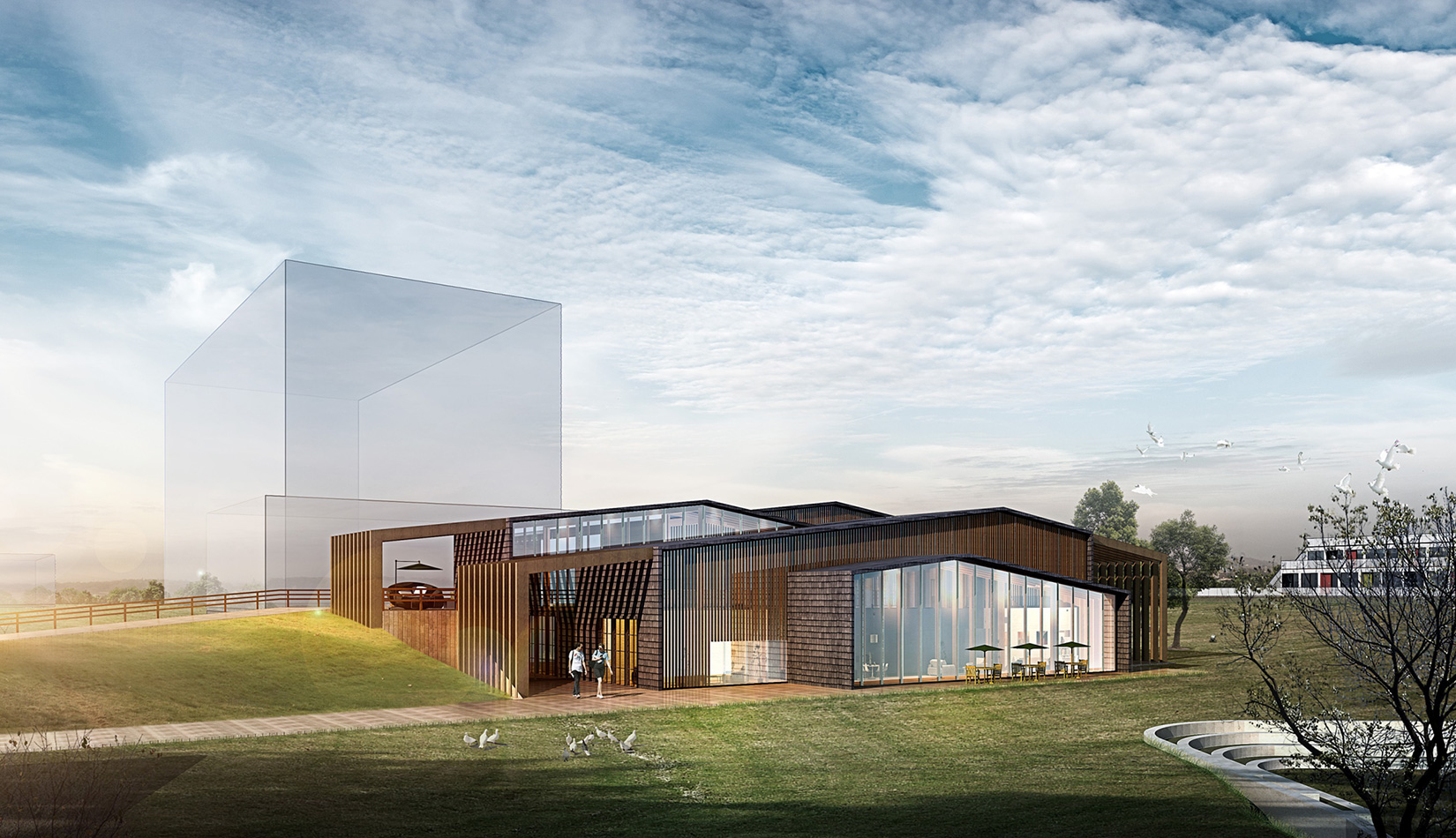 項(xiàng)目選址位于“中德創(chuàng)意設(shè)計(jì) D-ZONE”地塊中,天然的谷地和水流,以草地為主。 考慮到周邊建筑及環(huán)境,確定了交錯(cuò)的疊合的取景形式,致力于增加觀景表面積將美景框入窗中。 辦公區(qū)、多功能廳、展覽區(qū)、室外展廳和自然環(huán)境相互交融并置,相互之間流線獨(dú)立又彼此滲透。